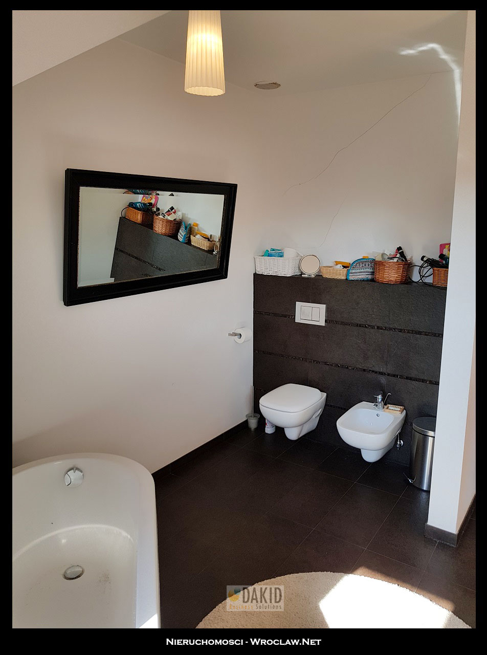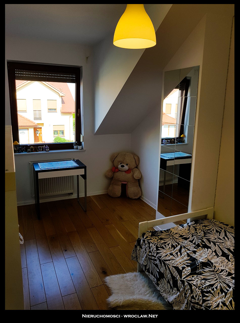 Dom wygodny dla rodziny z dziećmi oraz dla osób poszukujących domów w cichej lokalizacjia blisko Wrocławia. Zamknięte monitorowane osiedle z szybkim dojazdem do miasta.